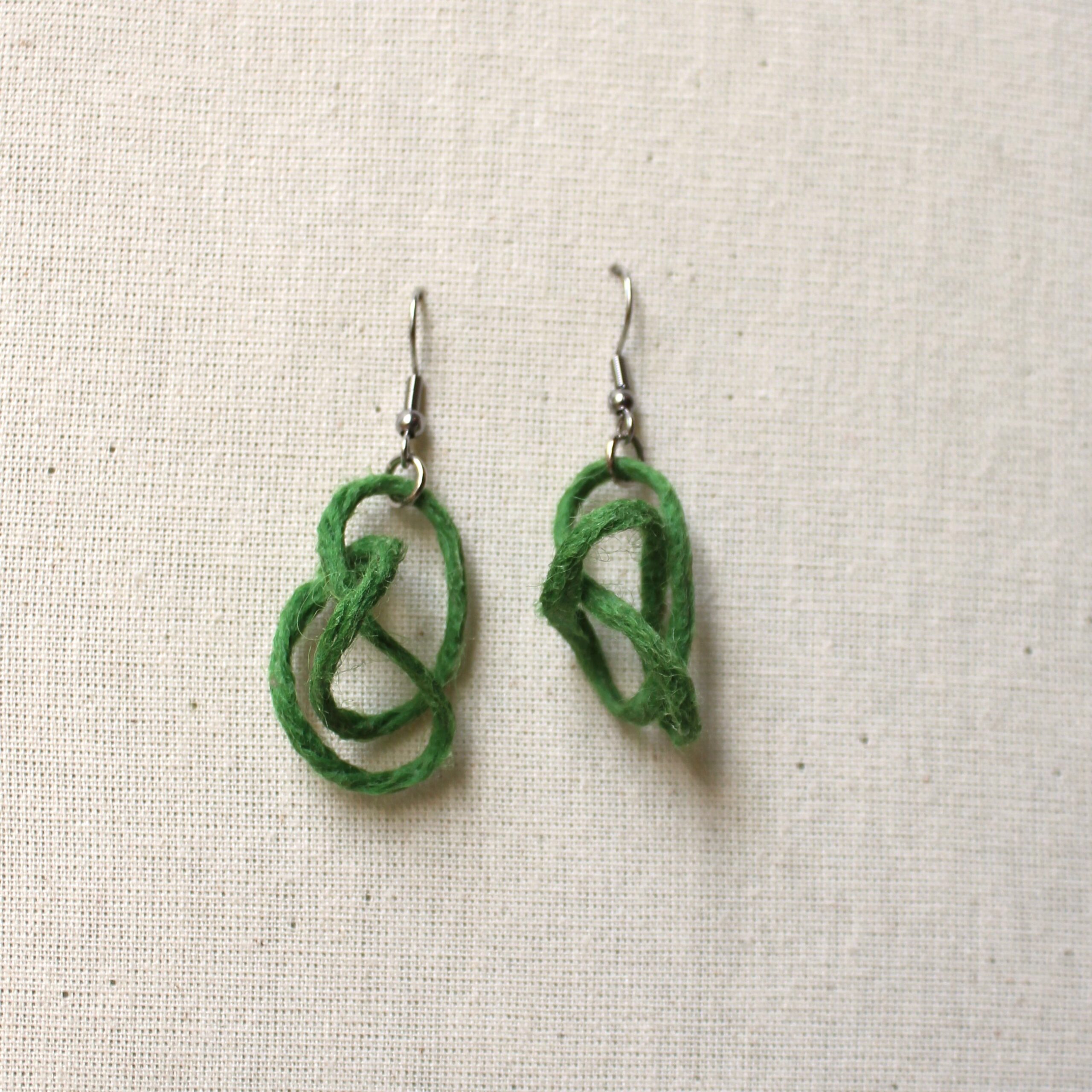 Brincos feitos com restos de lã de outros trabalhos artísticos. Aqueles retalhinhos que provavelmente iriam parar no lixo. Uma forma de honrar e continuar a história dessas outras mãos que tocaram e criaram com esse material anteriormente.